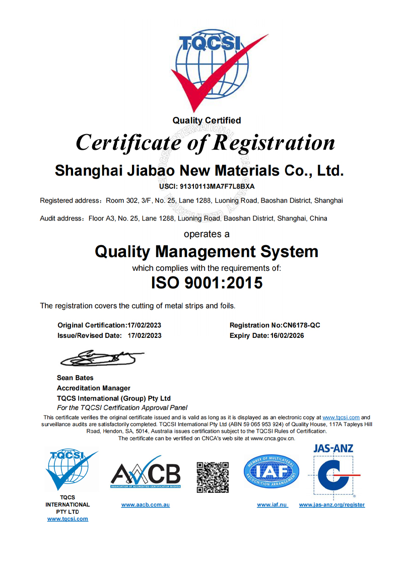 甲寶金屬材料(上海)有限公司主要從事于高精密、高性能、超薄材料的研發、生產、銷售。致力于新技術、新材料的研發和推廣應用,產品廣泛應用于電子電器、電子屏蔽、航空航天、智能汽車、醫療器械、能源裝備、石墨烯、鋰電池、5G通訊等領域。